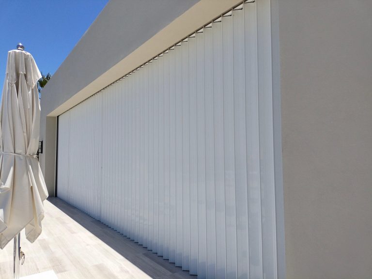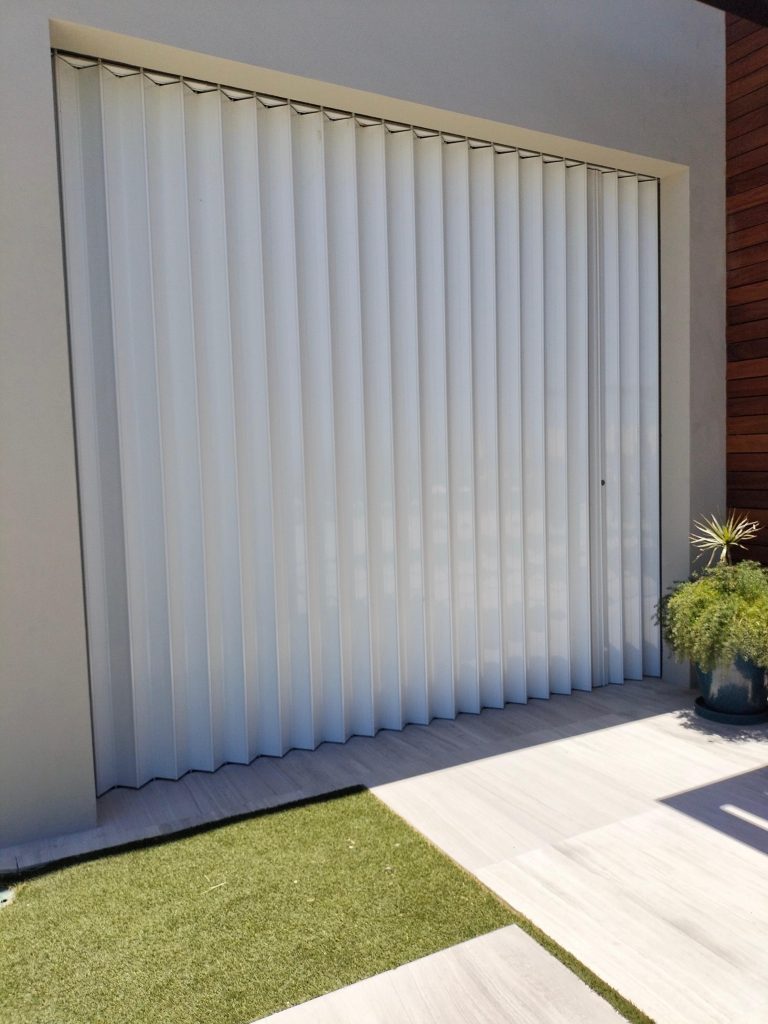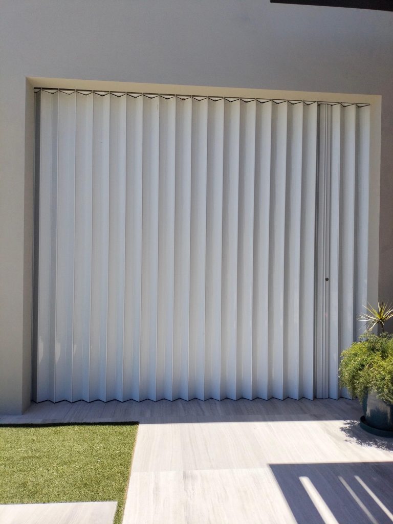 Persianas plegables tipo acordeón rápidas de operar, ideales para accesibilidad y seguridad.