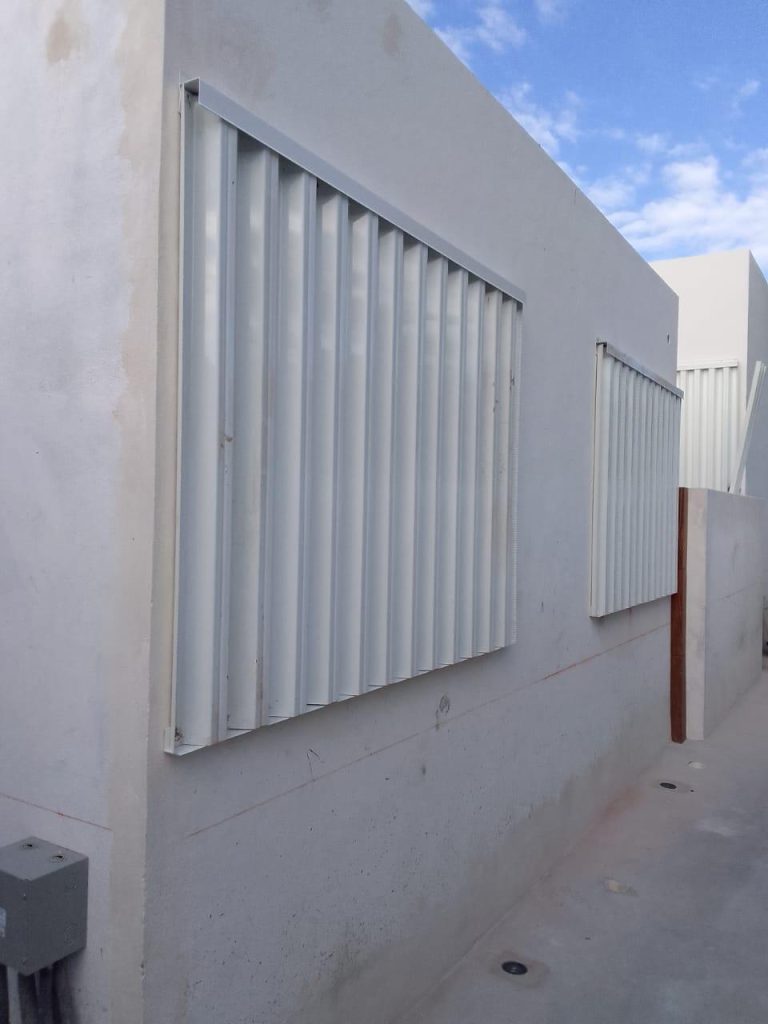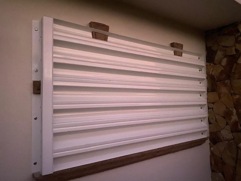 Paneles removibles de alta resistencia (aluminio o policarbonato) para protección efectiva y económica contra tormentas y huracanes.